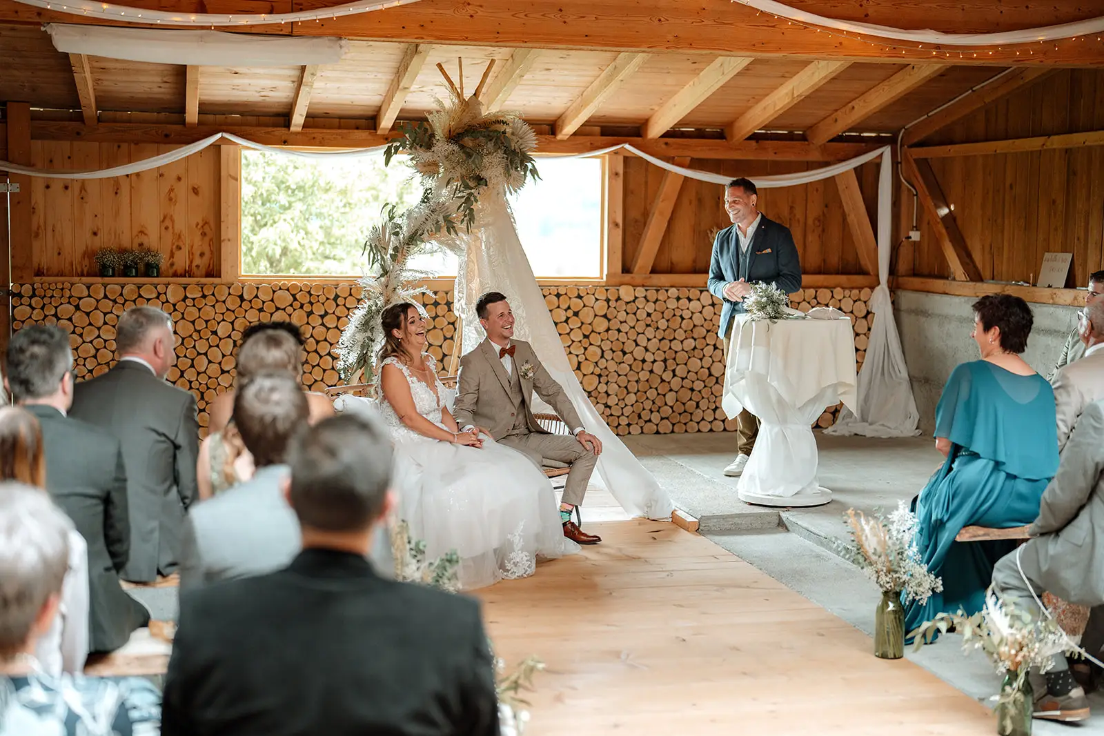 Die Zeremonie, geleitet vom charismatischen Trauredner Serge, war lebendig, herzlich und persönlich. Seine Worte liessen die Gäste in die Geschichte und Verbindung der beiden eintauchen. Es wurde gelacht, es wurde geweint, es wurde gefühlt. Genau die Mischung, die eine Trauung unvergesslich macht.