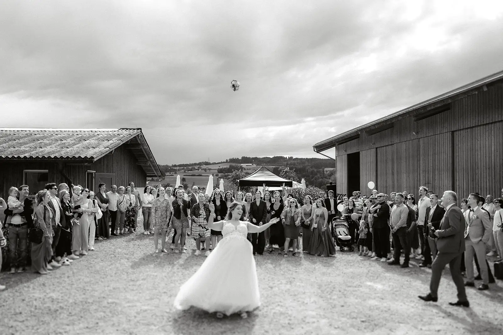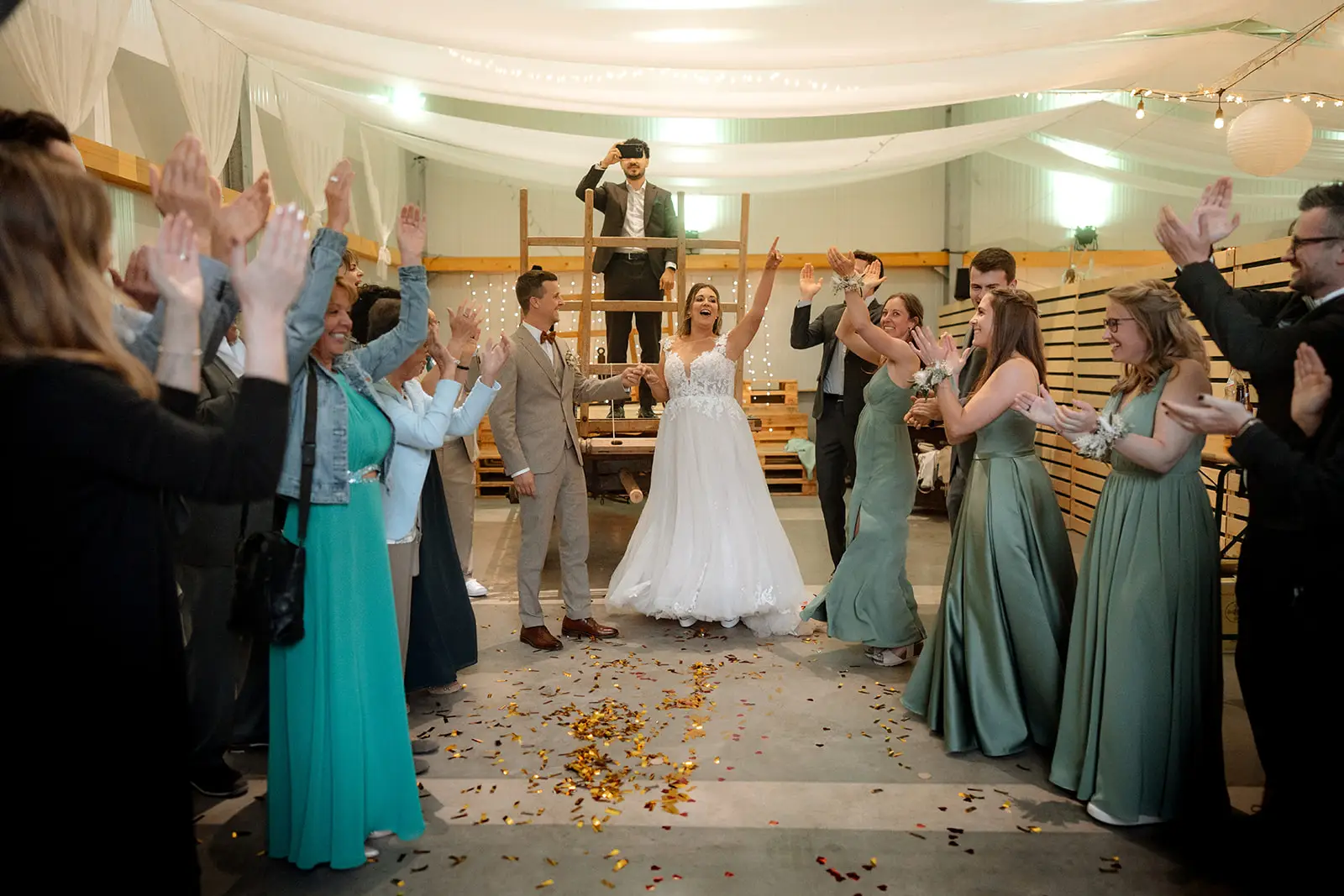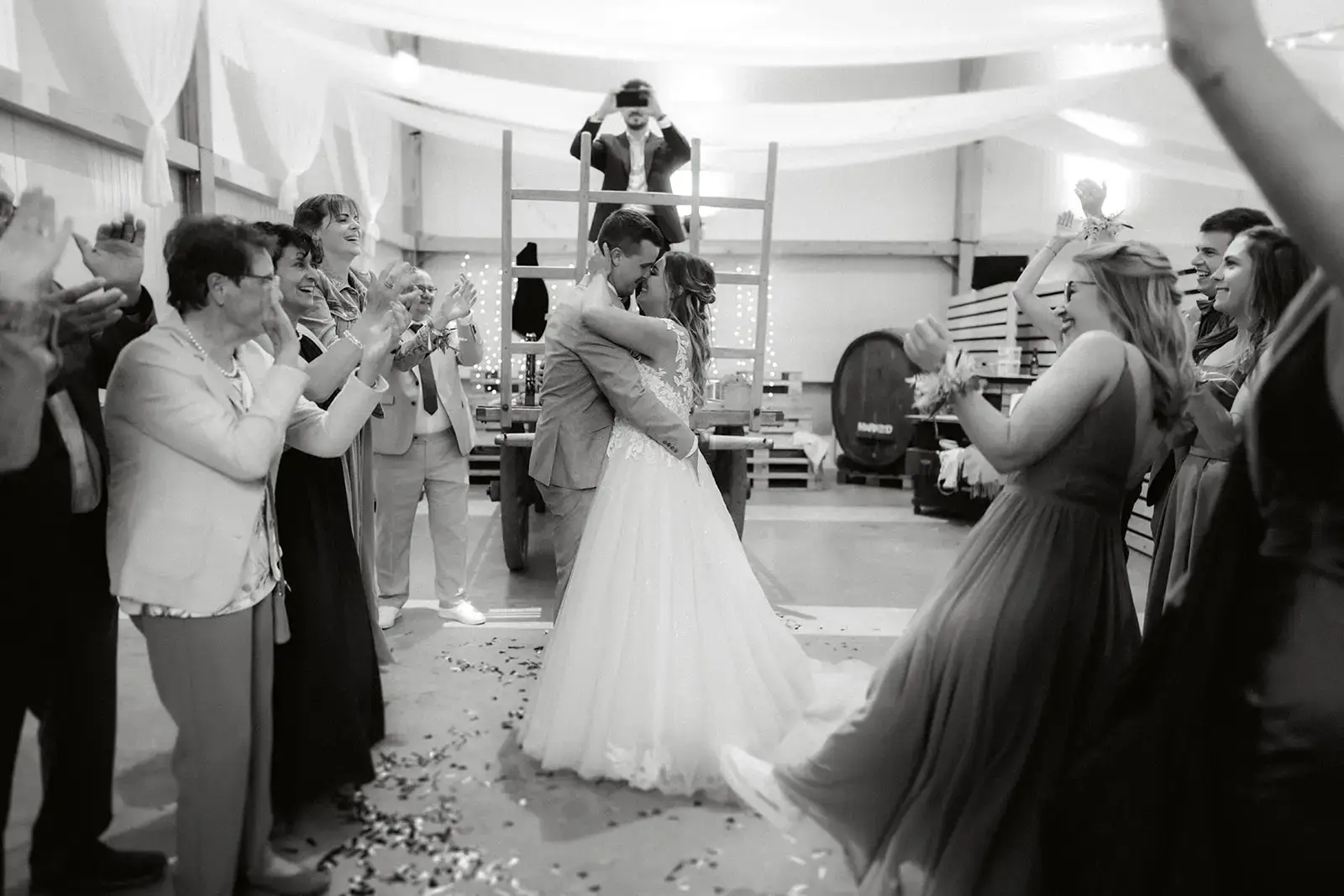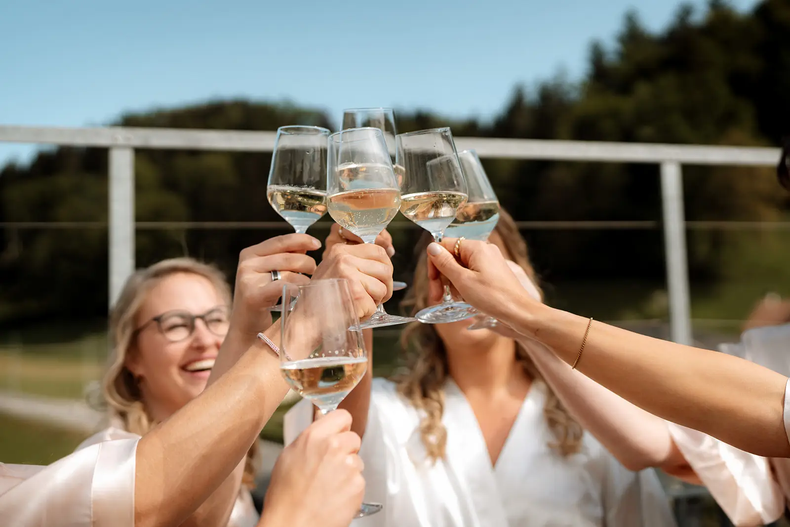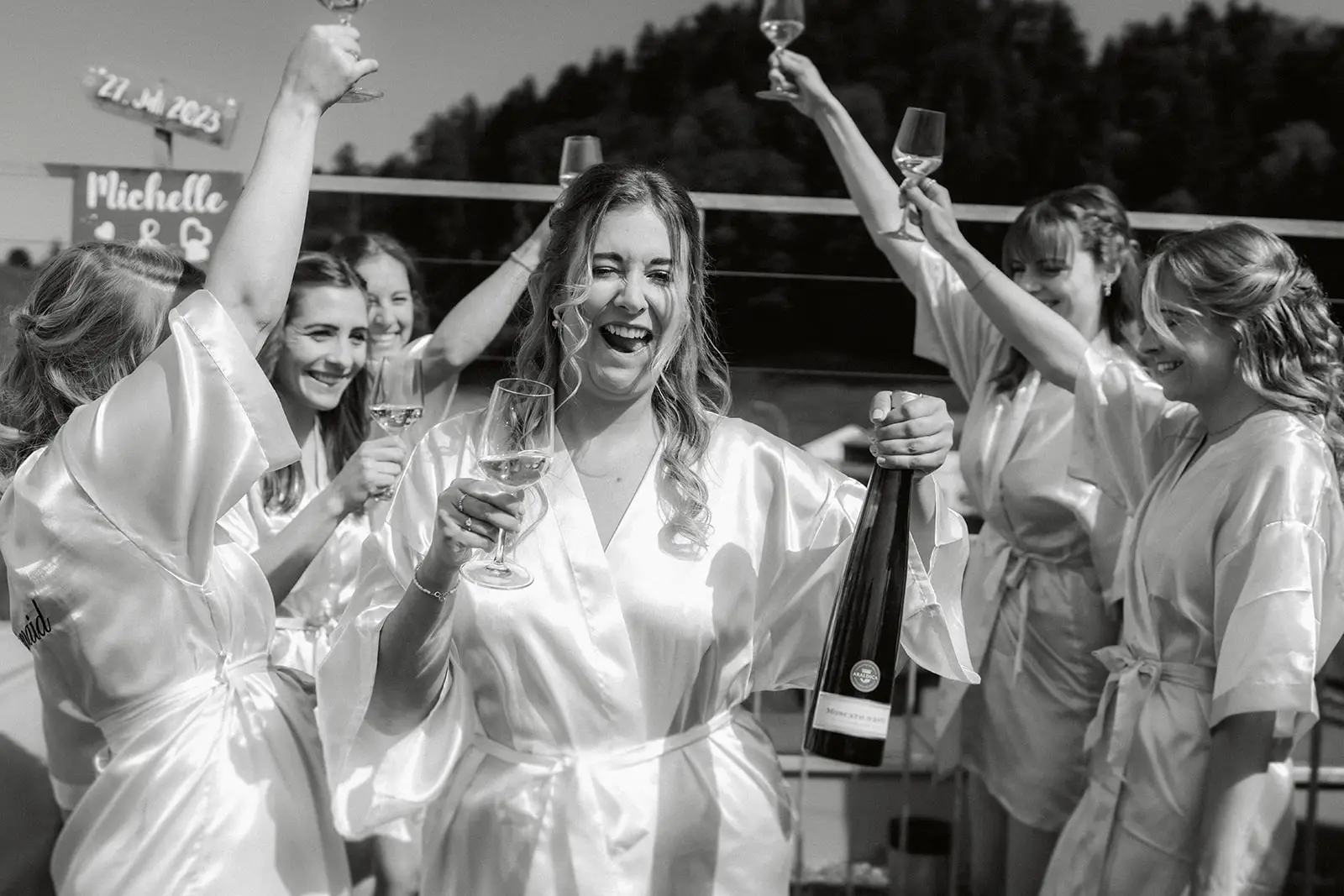 Nach dem Ja-Wort wurde draussen weiter gefeiert – Applaus, Umarmungen, Gratulationen. Die Stimmung war leicht, fröhlich und voller Energie. Und als am Abend die Musik lauter wurde und die Tanzfläche füllte, merkte man, wie frei und ausgelassen dieser Tag enden durfte: ein echtes Fest, genau so, wie es zu den beiden passt.