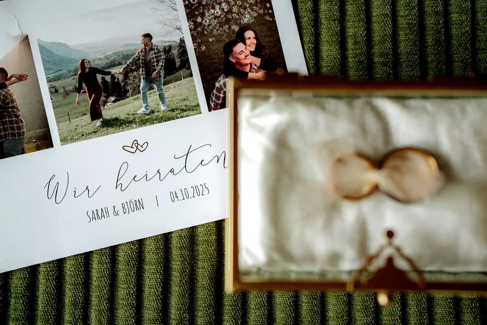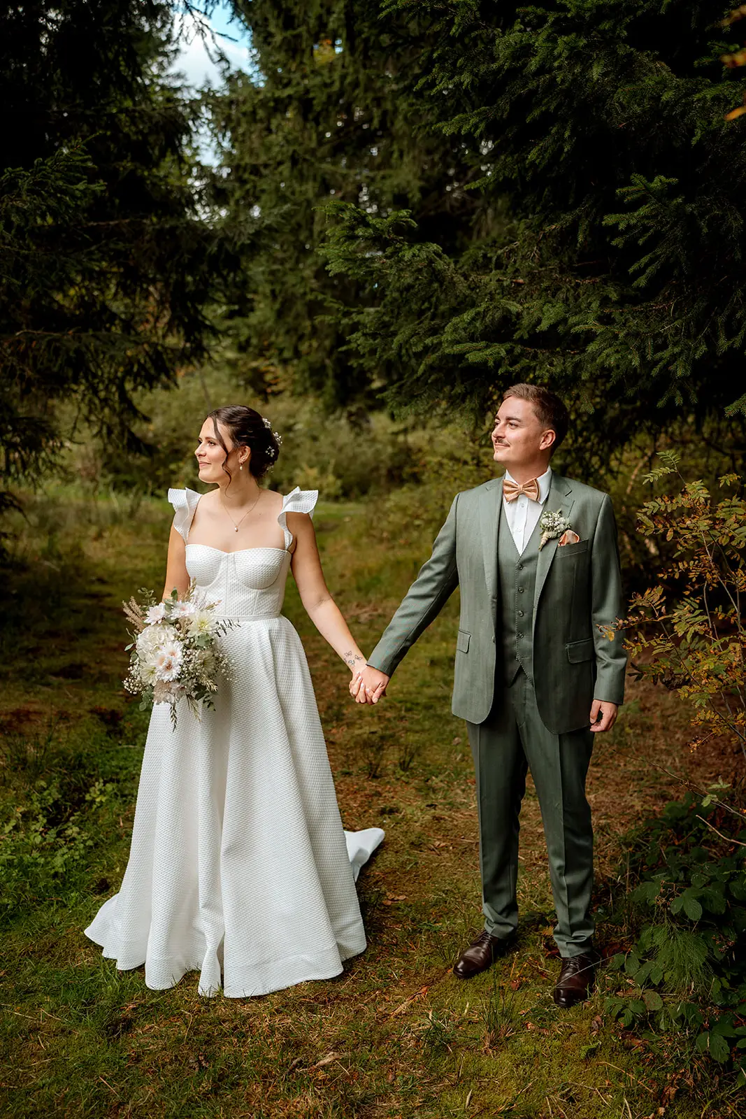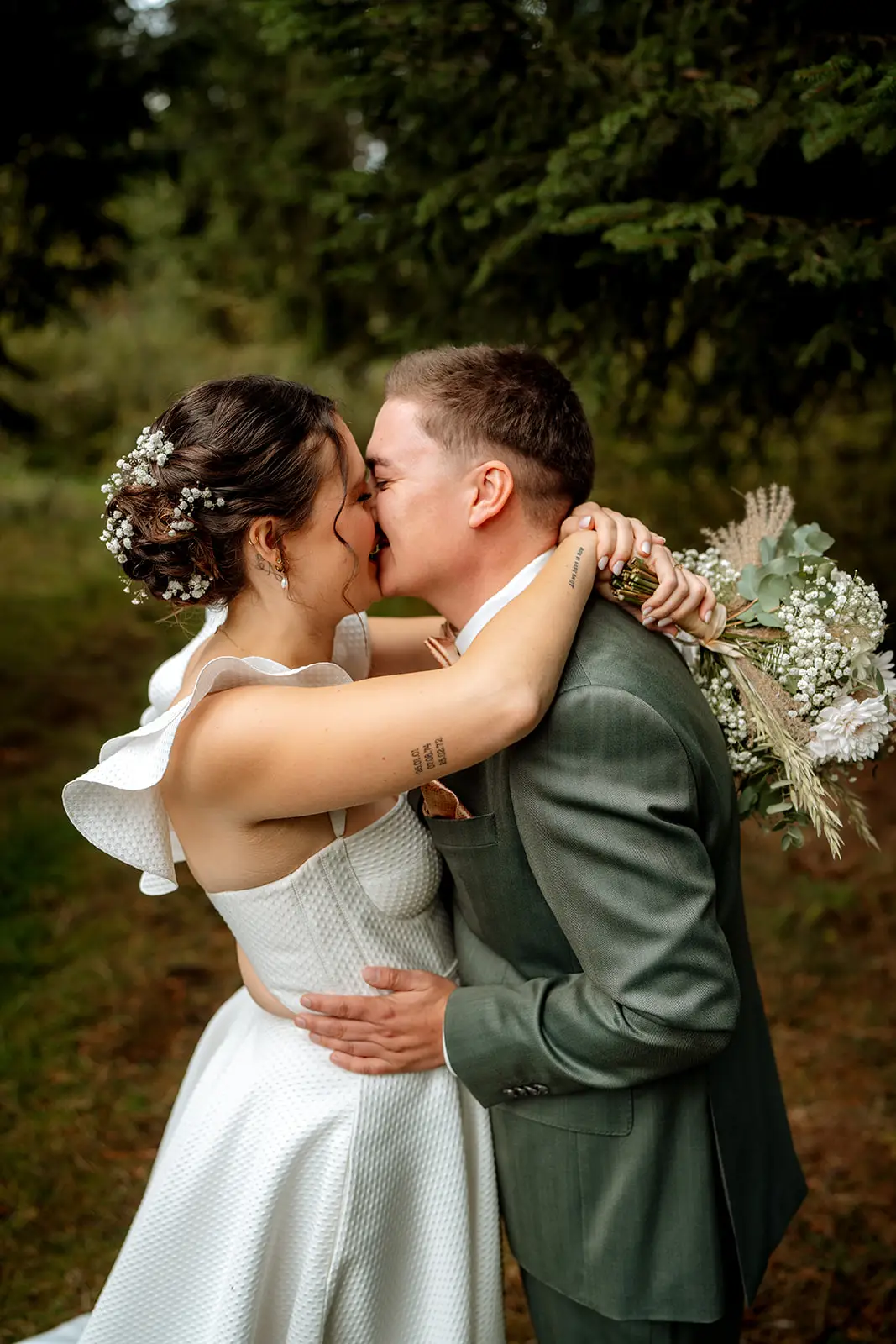 Der First Look fand ebenfalls in Reichenbach statt – im Wald, zwischen Moos, Licht und dem warmen Grün der Natur. Ein Ort, der genau das bot, was dieser Moment braucht: Ruhe, Verborgenheit, Nähe. Ein paar Schritte ins Tiefere, und plötzlich ist man ganz für sich – genau lange genug, um alles im Herzen ankommen zu lassen.