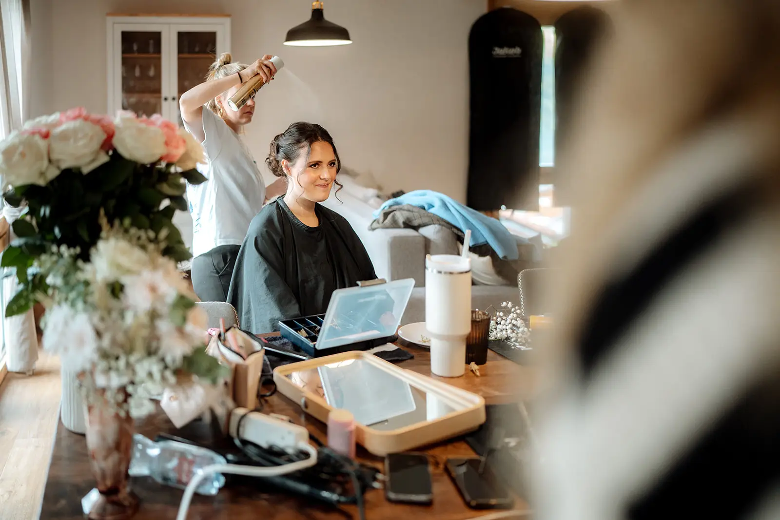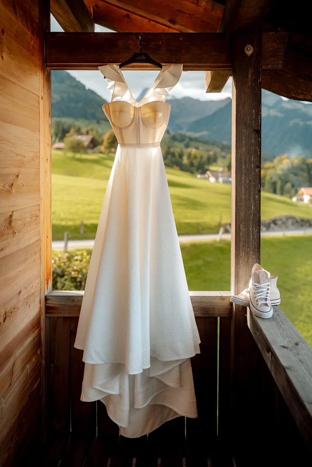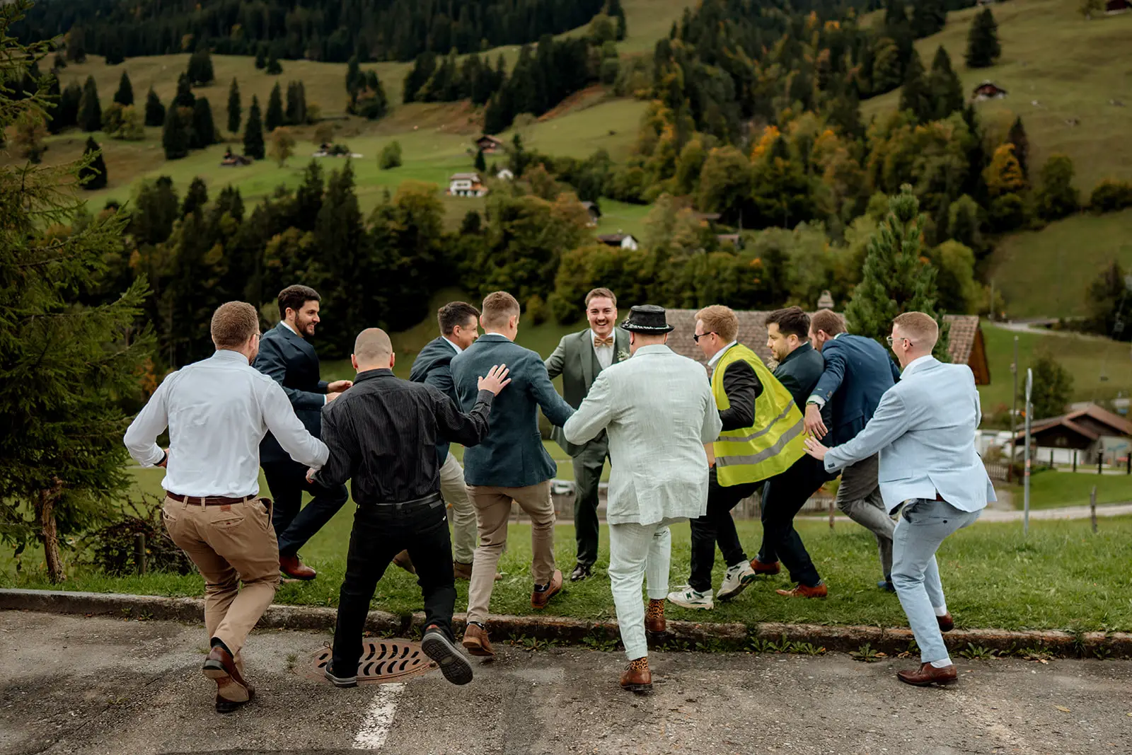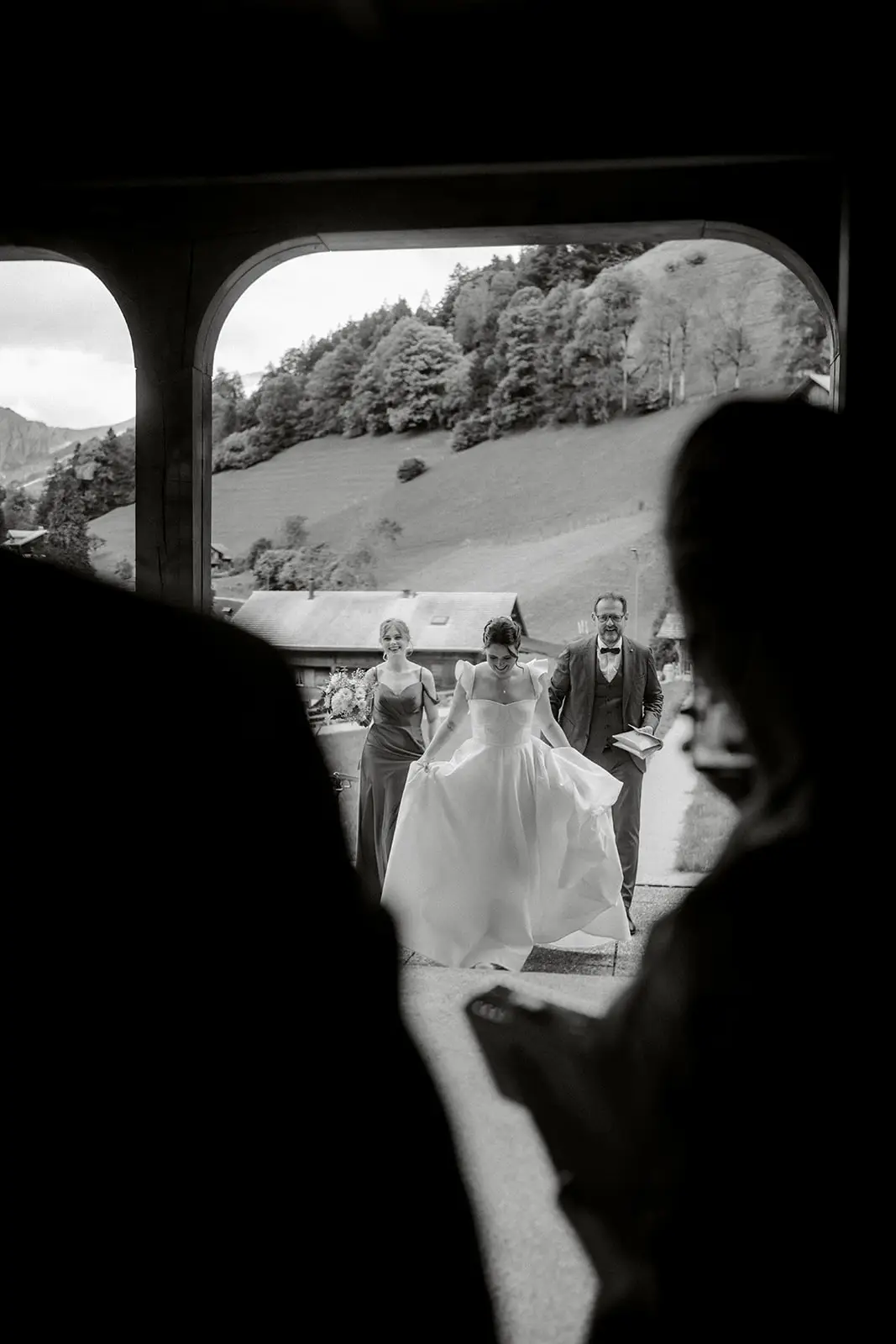Der Tag begann in Reichenbach – ganz ruhig, intim und voller Vorfreude. Während sich die Braut zu Hause fürs grosse Fest bereit machte, füllte sich der Raum langsam mit dieser ganz besonderen Stimmung, die nur ein Hochzeitstag hat. Kleine Details, zarte Momente, liebevolle Blicke – alles noch im Stillen, bevor draussen die Berge den Tag eröffneten.