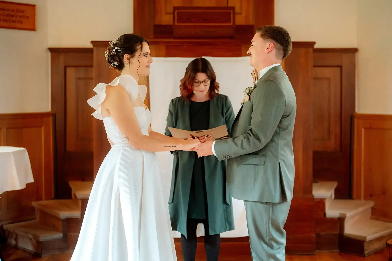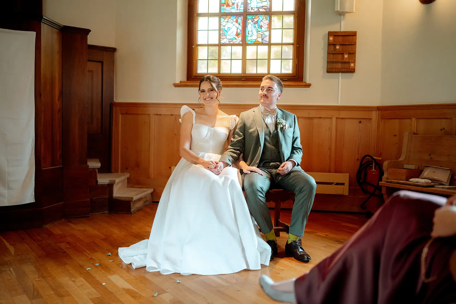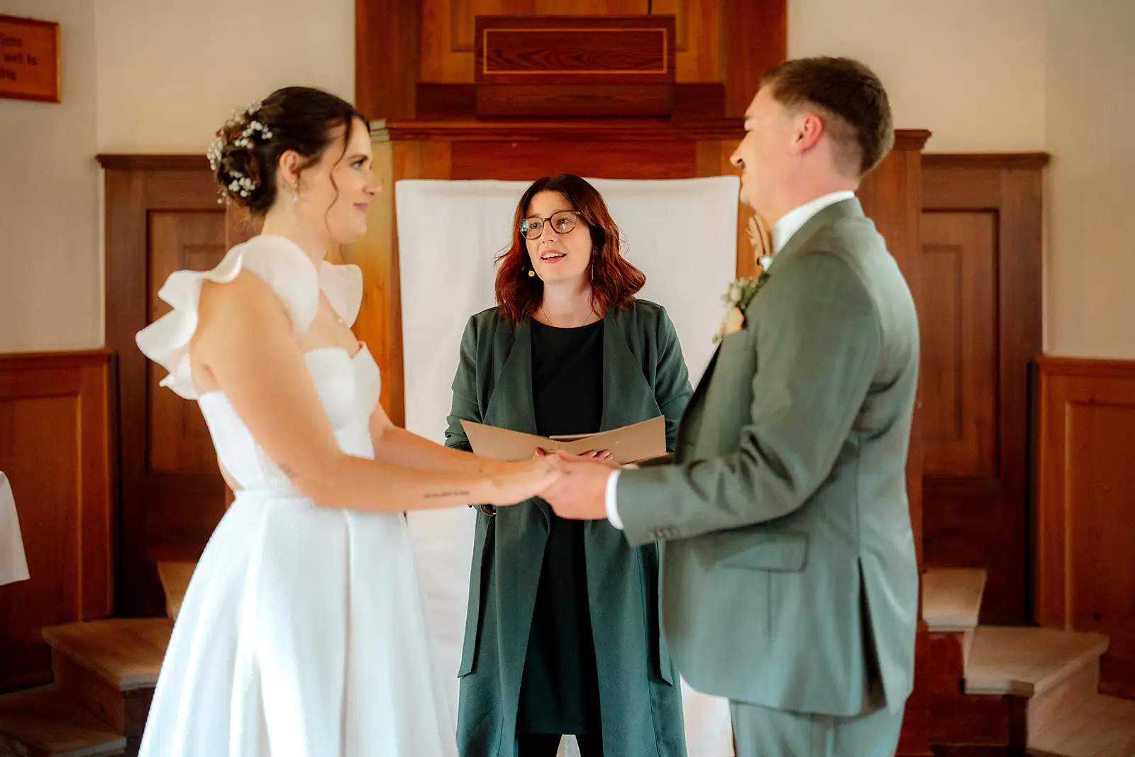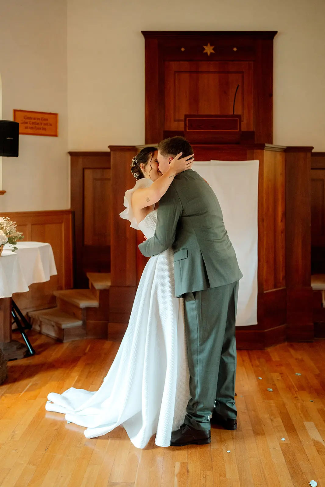 Die Trauung fand später in der Kapelle im Kiental statt. Holz, Licht, Berge vor der Tür – ein Ort, der die Geschichte der Region trägt und gleichzeitig so viel Wärme ausstrahlt. Worte, die berührten. Emotionen, die man in den Gesichtern lesen konnte. Und diese feine Mischung aus Festlichkeit und echter Natürlichkeit, wie man sie im Kiental einfach spürt.
