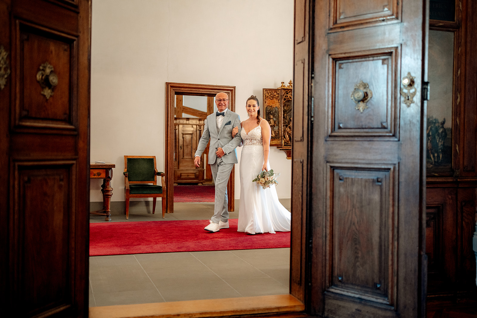 Melanie und Silvan haben sich an einem sommerlichen Tag im Rathaus Luzern das Ja-Wort gegeben. Die Trauung war herzlich, persönlich und geprägt von vielen berührenden Momenten. Als Hochzeitsfotograf durfte ich die beiden an diesem besonderen Tag begleiten und die Emotionen sowie die kleinen Details festhalten, die eine zivile Hochzeit so einzigartig machen.