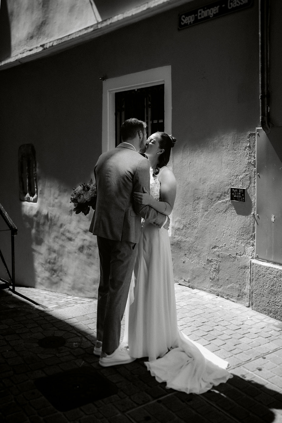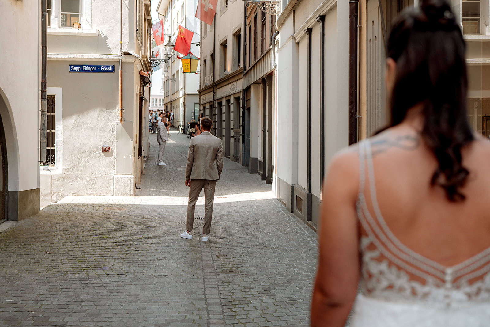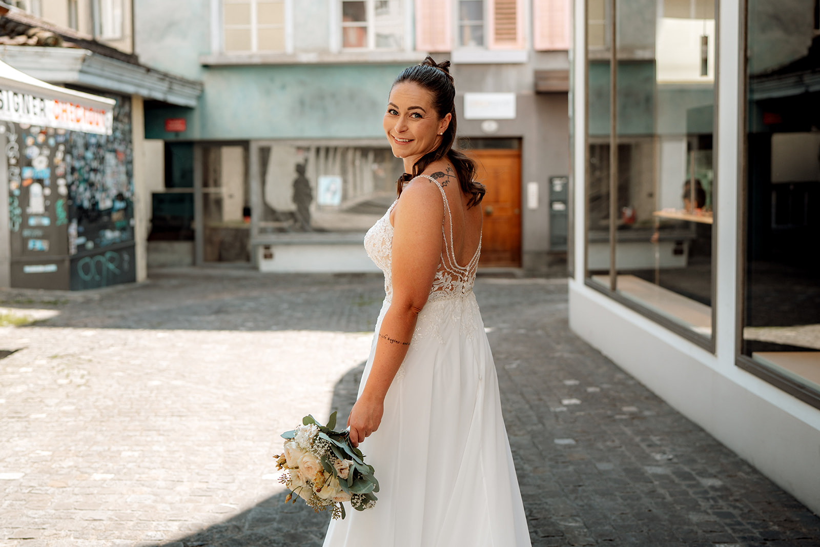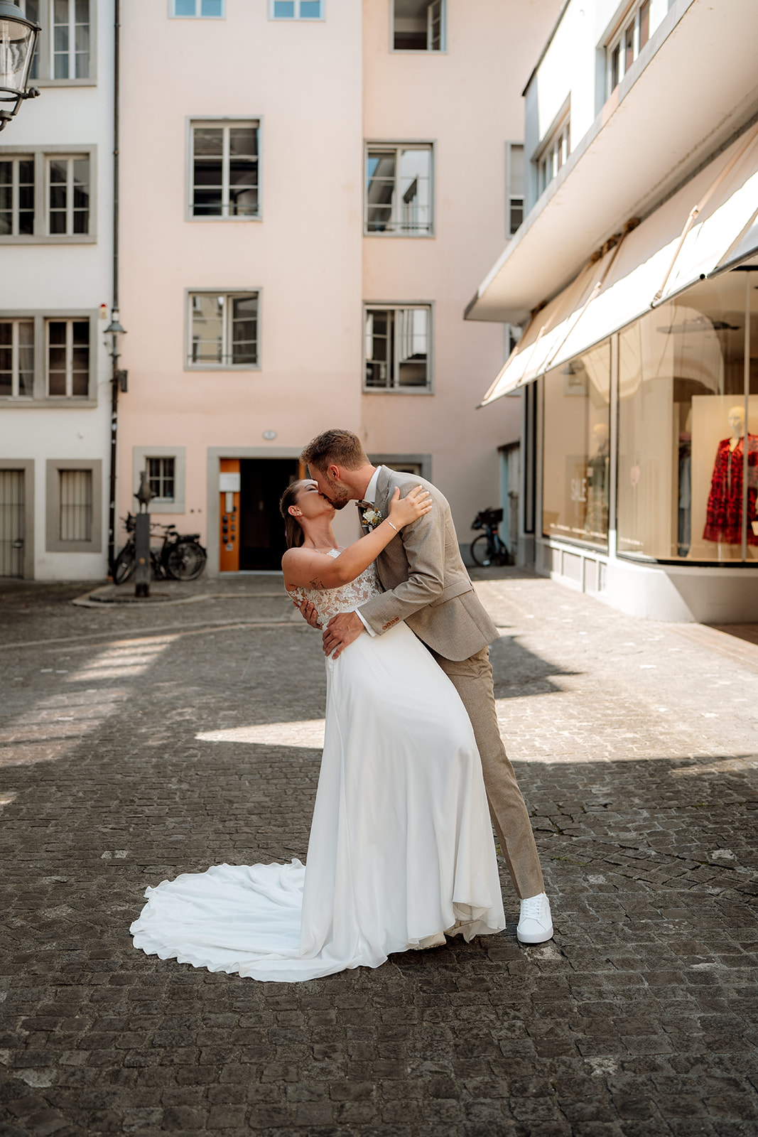 Nach der Trauung nutzten wir die wunderschöne Altstadt von Luzern für ein entspanntes Fotoshooting. Zwischen Kapellbrücke, Reussufer, kleinen Gassen und historischen Fassaden entstanden natürliche Hochzeitsfotos mit urbanem Charme. Die sommerliche Stimmung, das warme Licht und das lebendige Treiben der Stadt verliehen den Bildern eine ganz besondere Leichtigkeit.